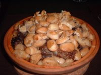 ローリエ3枚、セロリ・たまねぎ・シイタケ・生ソーセージ・ターキーの内臓・白ワイン漬け乾燥イチジクの刻んだもの、ナツメグ、シナモン、クミンシード、ディルシード、松の実、タイム、ローズマリー、バジル、イタリア米、塩、黒胡椒。後で取り出して付け合せに使う。